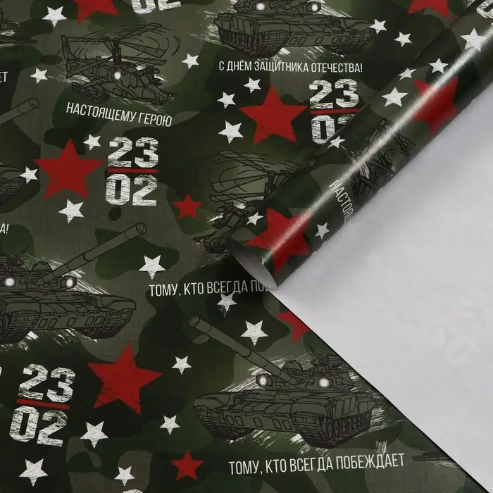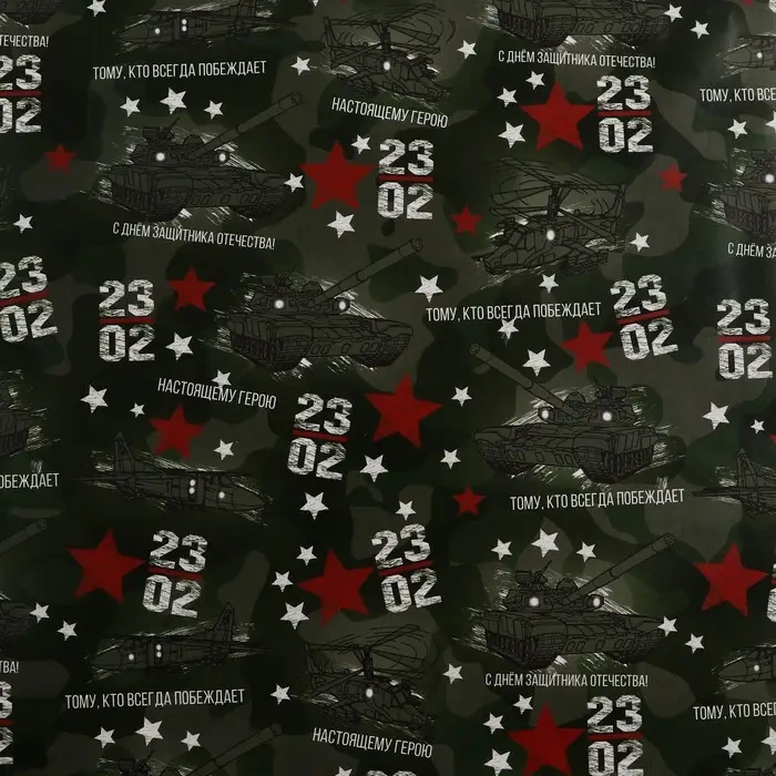 Бумага упаковочная, "23 Февраля", односторонняя 100 см х 70 см