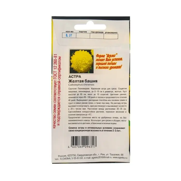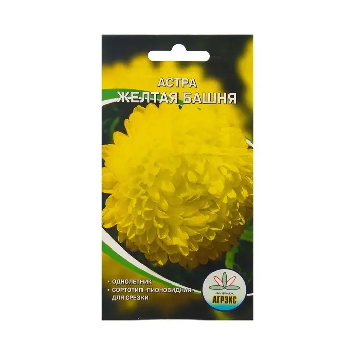 Семена Цветов Астра пион. Жёлтая башня, 0,2 г