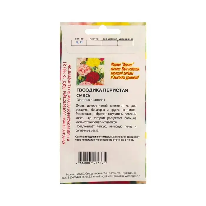 Семена Цветов Гвоздика перистая смесь окрасок, 0,1 г