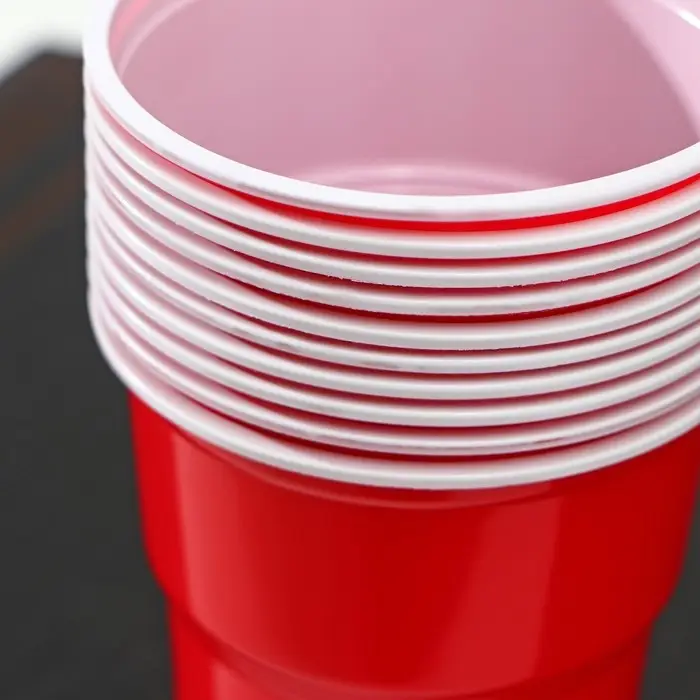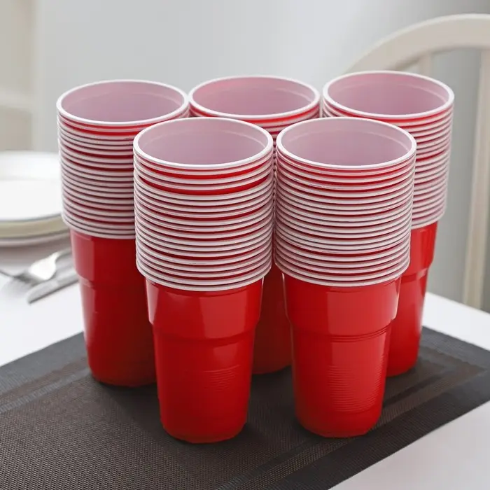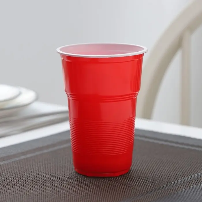 Большой одноразовый пластиковый стакан (500 мл, красно-белый)