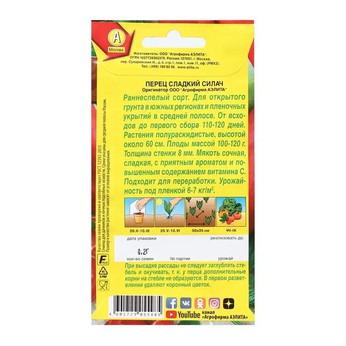 Семена Перец сладкий " Халиф F1", ц/п, 5 шт.