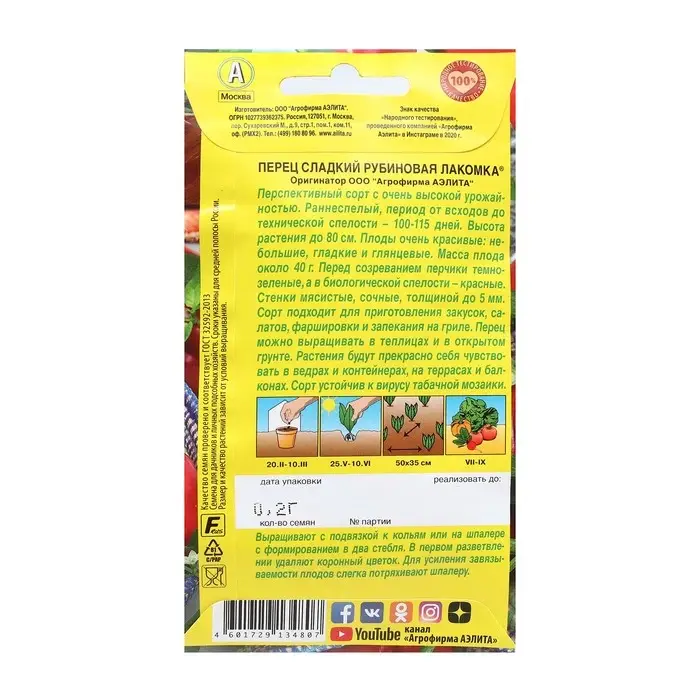 Семена Перец сладкий "Рубиновая лакомка", 20 шт