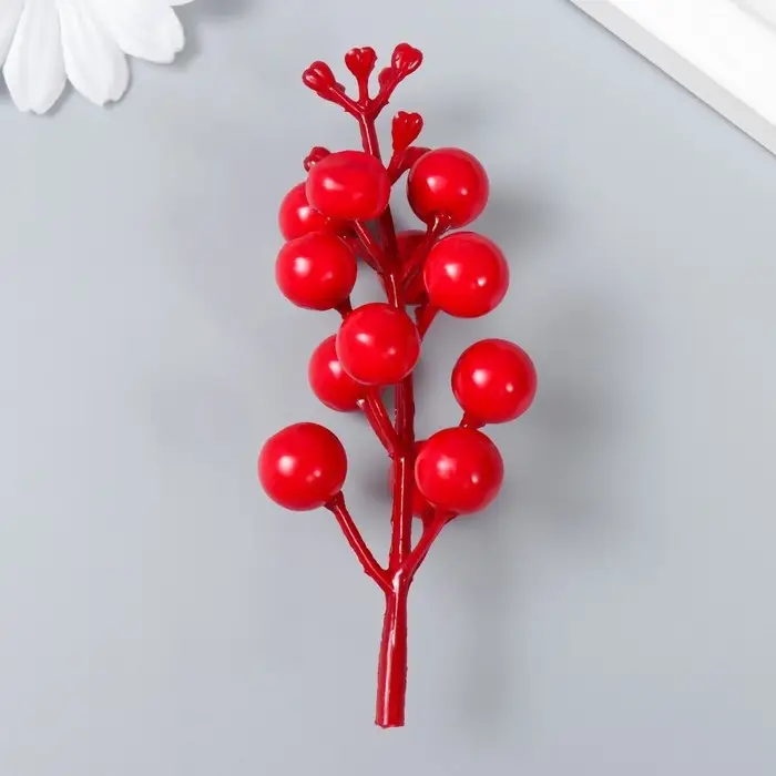 Декор для творчества "Веточка с ягодами 12 ягод" красные 11,5 см