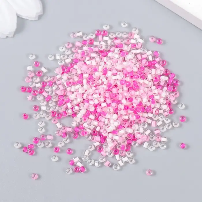 Бисер стекло 12/0 "Прозрачный. Цветная серединка. Розовый" 10 гр