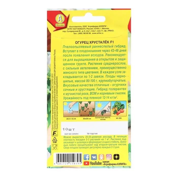 Семена Огурец "Хрусталек", F1, 10 шт