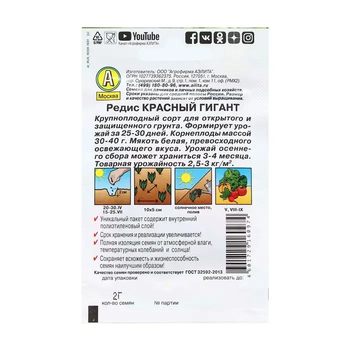 Семена Редис "Красный гигант", Лидер, 2 г