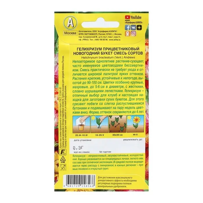 Семена цветов Гелихризум "Русский размер", 0,1 г