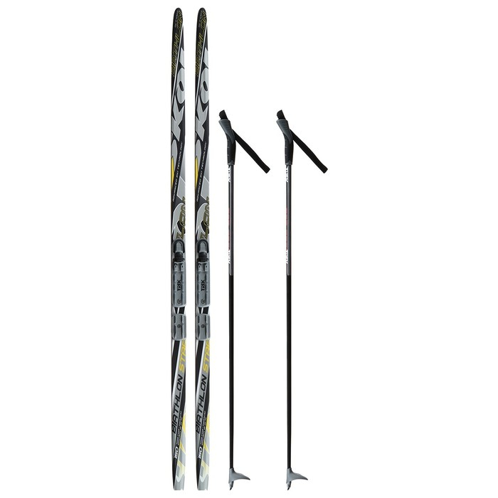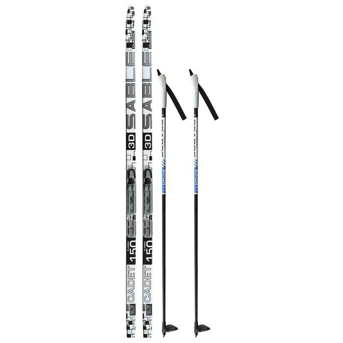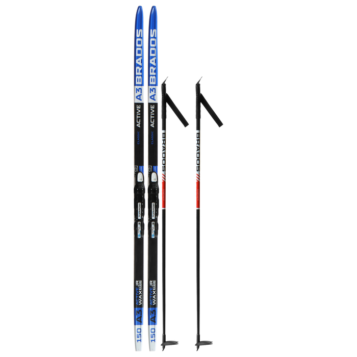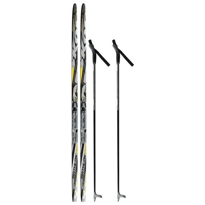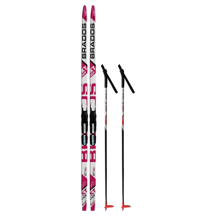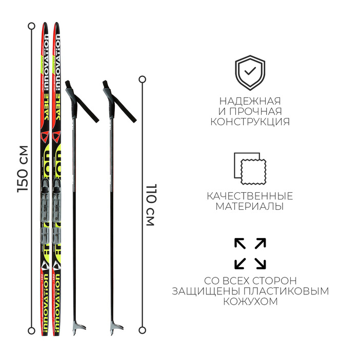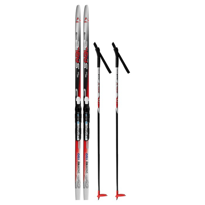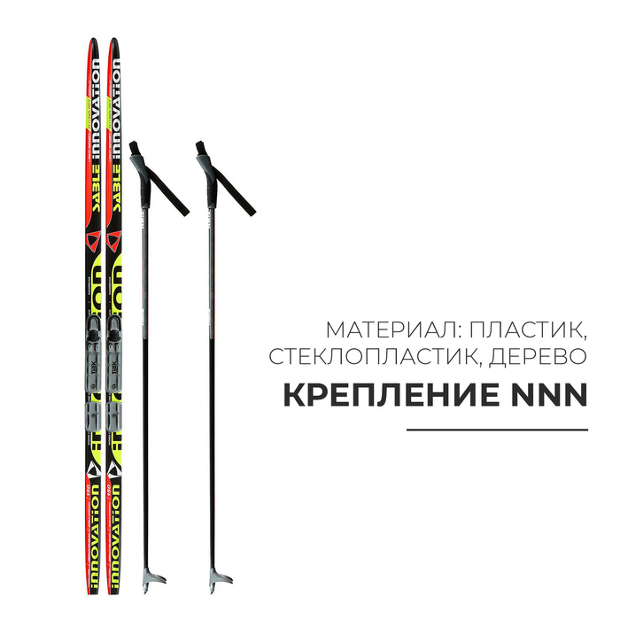 Комплект лыжный: пластиковые лыжи 150 см без насечек, стеклопластиковые палки 110 см, крепления NNN, цвета МИКС