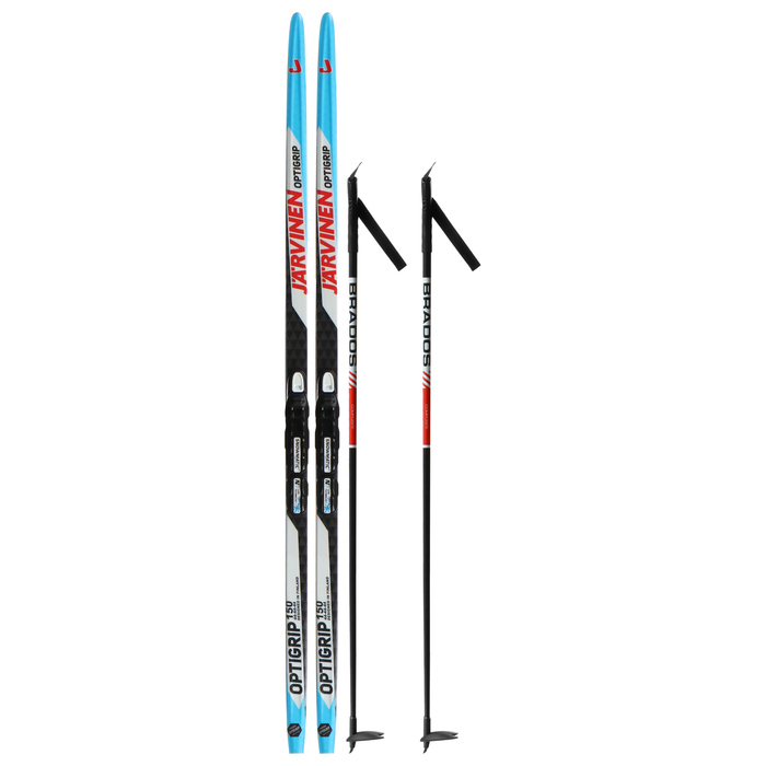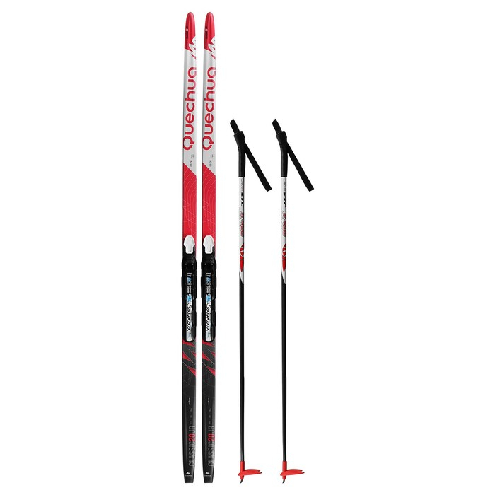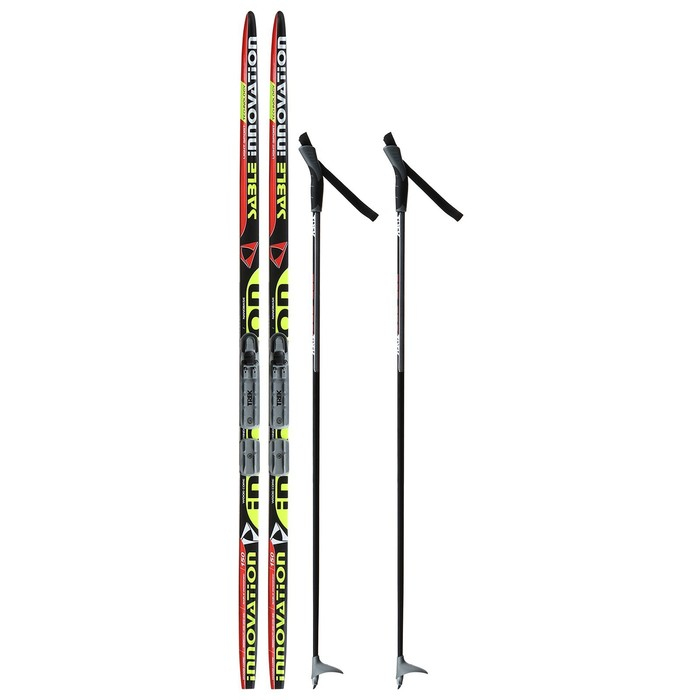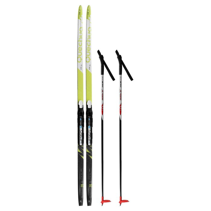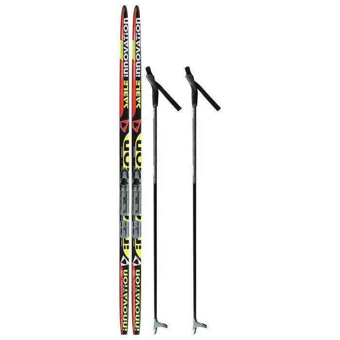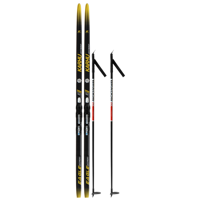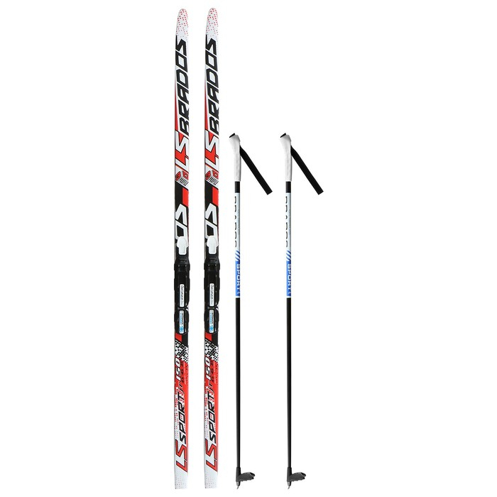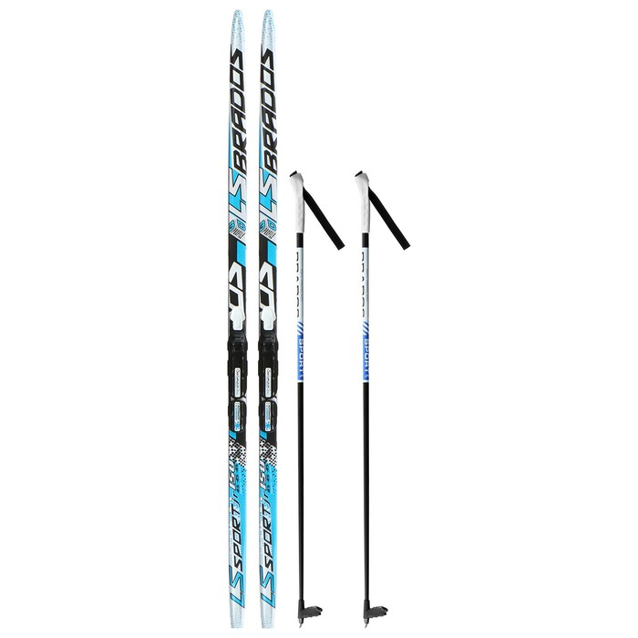 Комплект лыжный: пластиковые лыжи 150 см без насечек, стеклопластиковые палки 110 см, крепления NNN, цвета МИКС