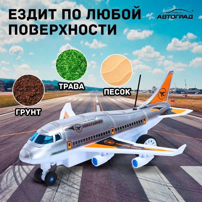 Самолет на радиоуправлении «Лайнер», световые эффекты, работает от батареек, цвет серый