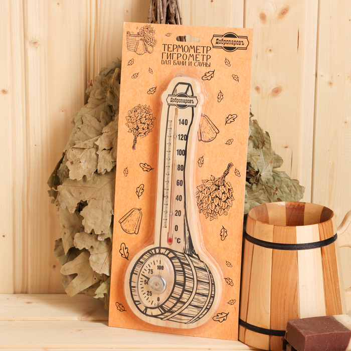 Термометр-гигрометр для бани, деревянный