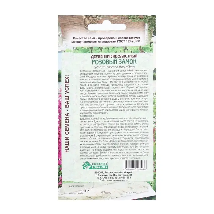 Семена Цветов Дербенник иволистный Розовый Замок, 0,1 г