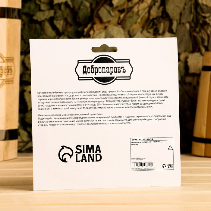 Термометр-гигрометр для бани, деревянный