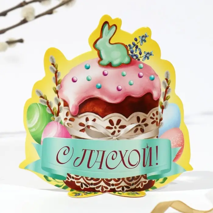 Открытка держатель для яйца «Пасхальная композиция» на пасху, 12.4×13.9 см