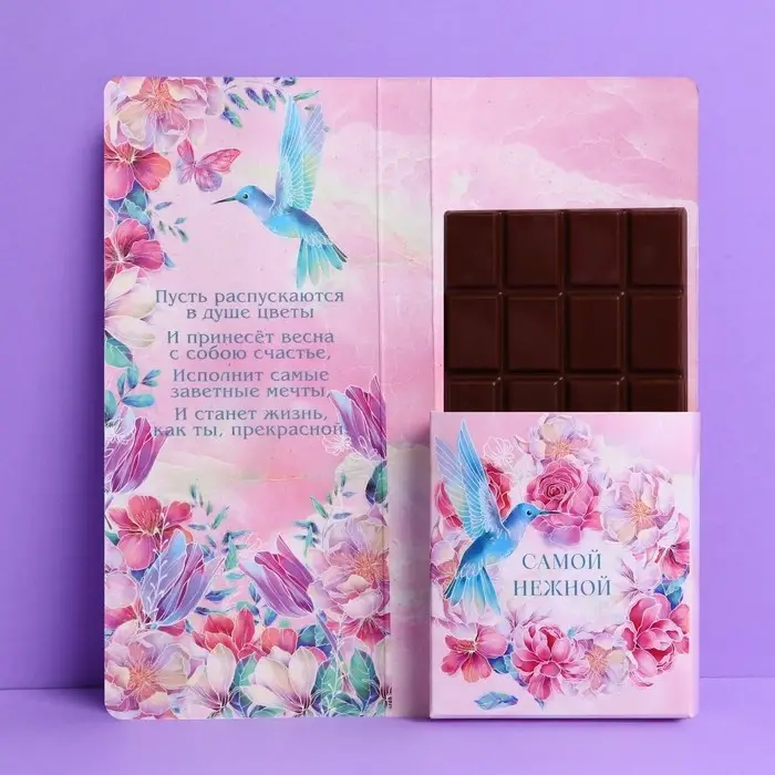 Открытка с местом под шоколадку «Самой нежной на 8 марта»