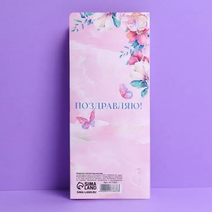 Открытка с местом под шоколадку, станет прекрасным подарком к празднику. Яркий дизайн, удобный формат и приятные эмоции обеспечены своему получателю.