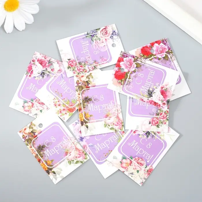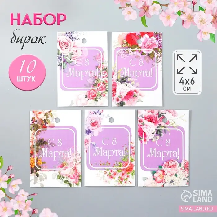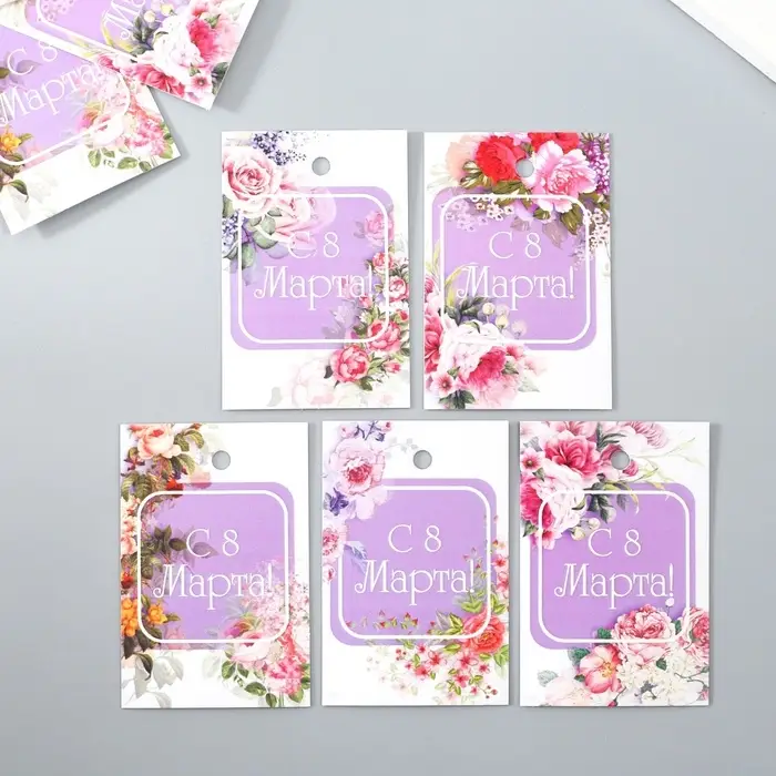 Бирка картон «8 Марта» набор 10 шт., 5 видов, 4×6 см