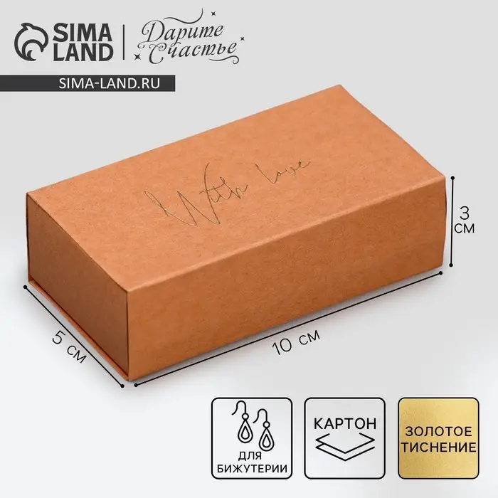 Коробка подарочная под бижутерию крафтовая, упаковка, «With love», 10 х 5 х 3 см