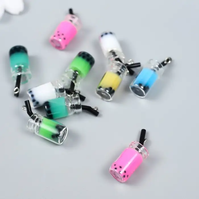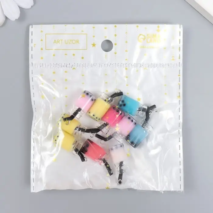 Декор для творчества стекло, пластик "Баночка со смузи с петелькой" МИКС 1х1х2,4 см