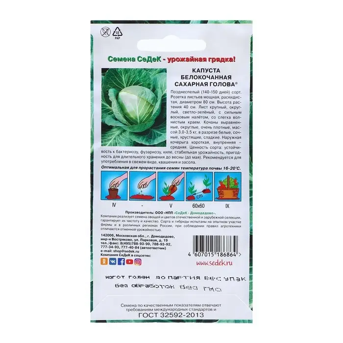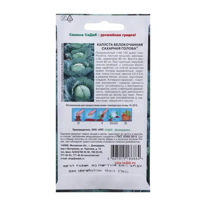 Семена Капусты белокочанной "Сахарная голова "F1 0.5 г