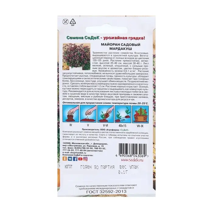 Семена Майоран Садовник 0,1 г автор.