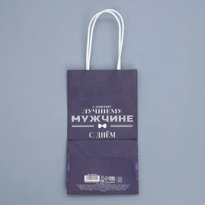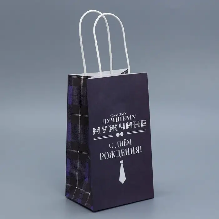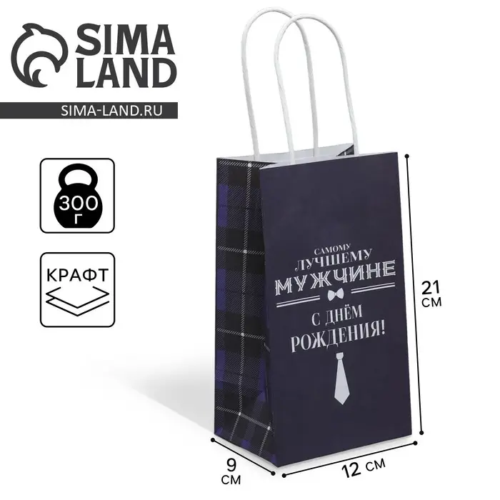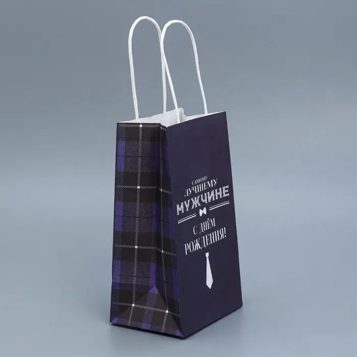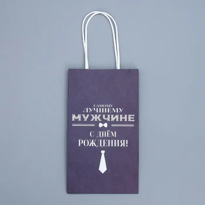 Пакет подарочный крафтовый, упаковка, «С Днём рождения», 12 х 21 х 9 см