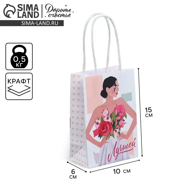 Пакет подарочный крафтовый, упаковка, «Лучшей», 15 х 10 х 6 см