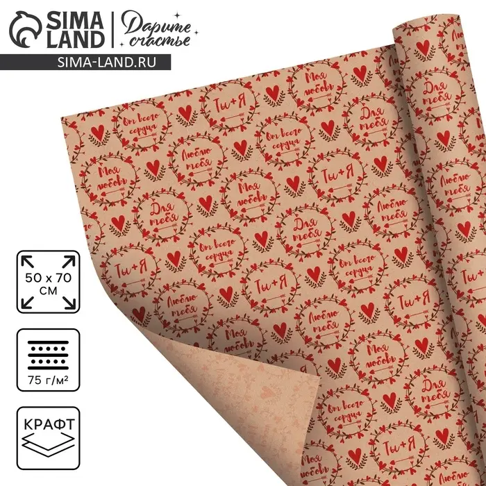 Бумага упаковочная крафтовая «Для тебя», 50х70 см