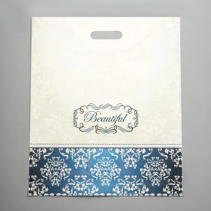 Пакет полиэтиленовый с вырубной ручкой, прочный с оригинальным рисунком.