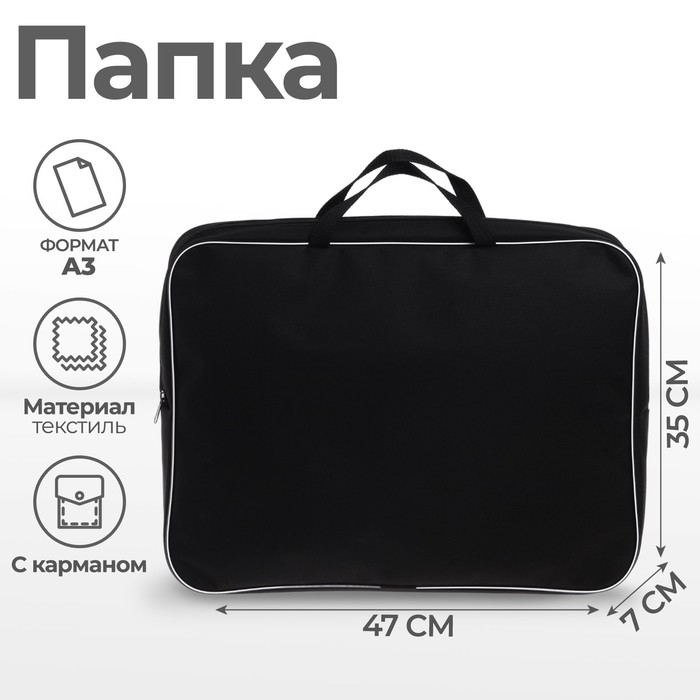 Папка для чертежей и рисунков А3, 470 х 350 х 70 мм, с ручками, текстильная, Calligrata, чёрная