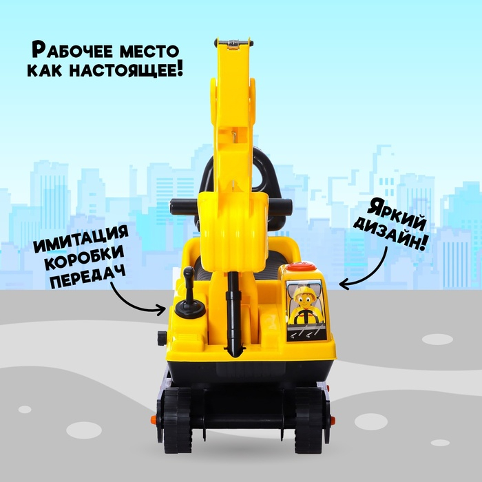 Толокар «Экскаватор», подвижный ковш, цвет жёлтый