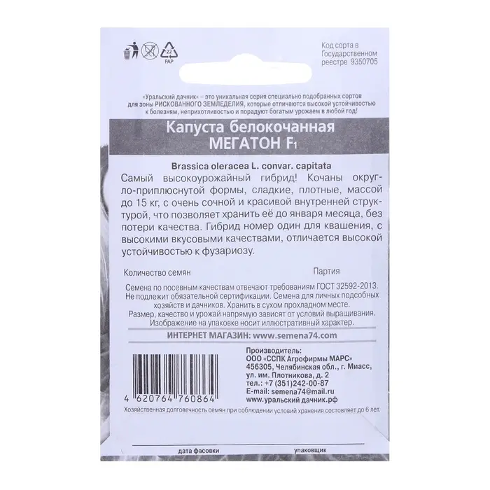 Семена Капуста белокочанная "Мегатон", F1, б/п, 10 шт.
