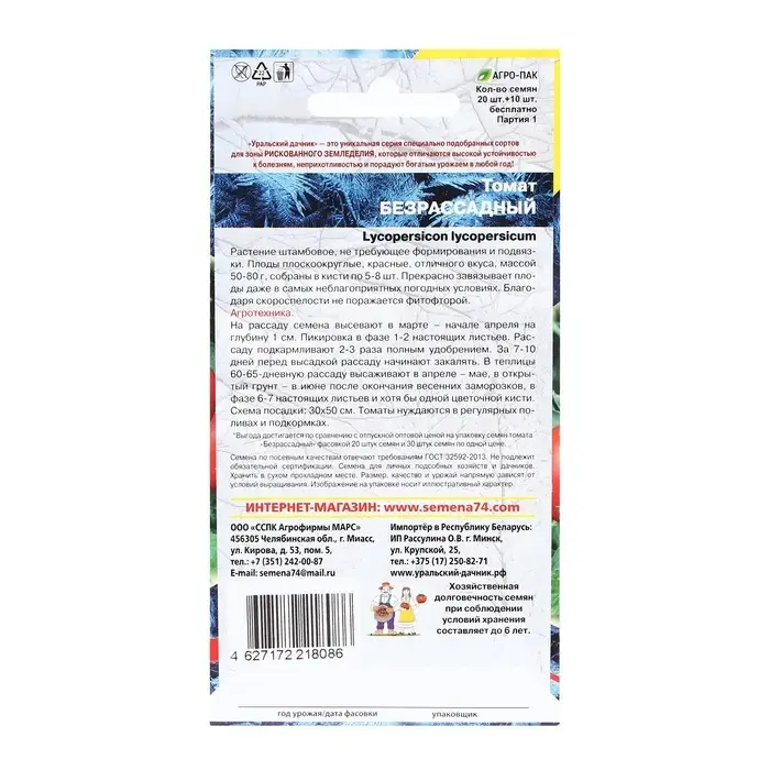 Семена Томат "Безрассадный", 20 шт + 10 шт