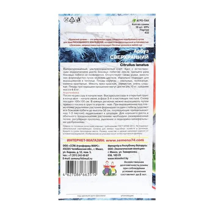 Семена Арбуз "Уральский Скороспел", F1, набор 5 шт
