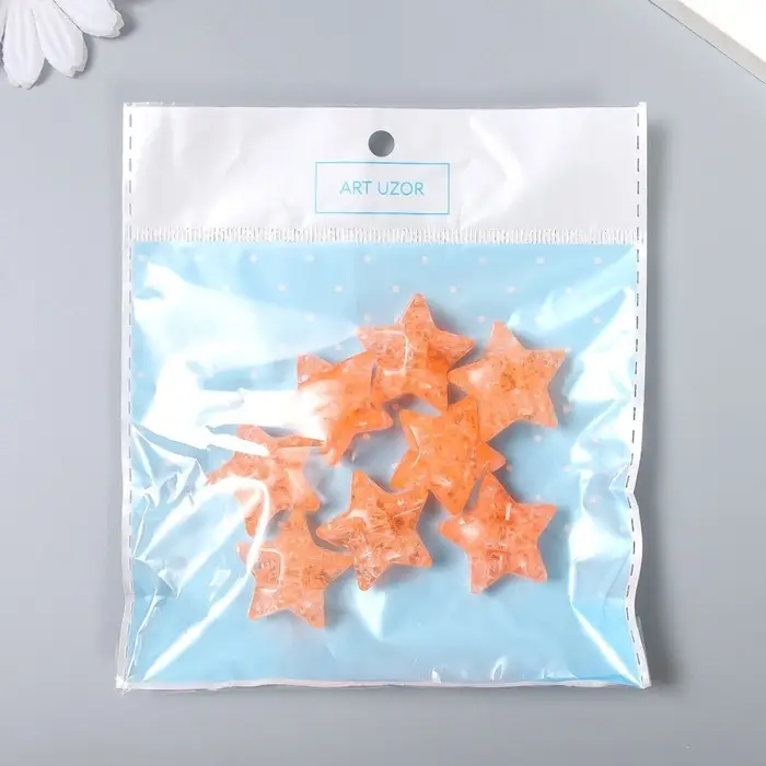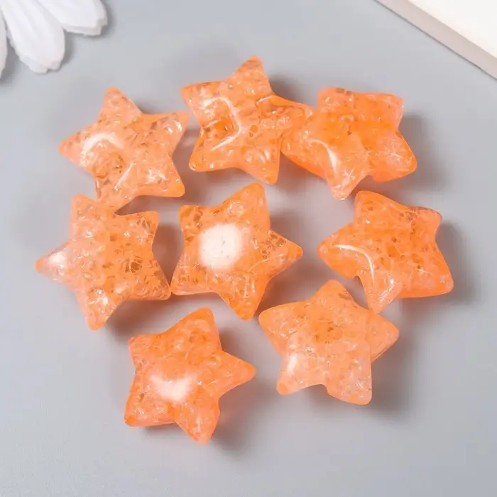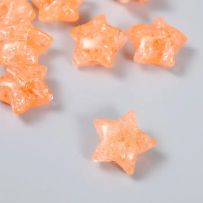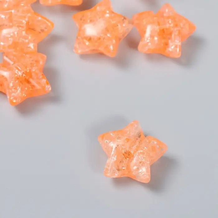 Бусина для рукоделия и плетения «Арт Узор. Звезда. Колотый лёд», пластик, прозрачно-коралловая, 1.3×2.6×2.6 см
