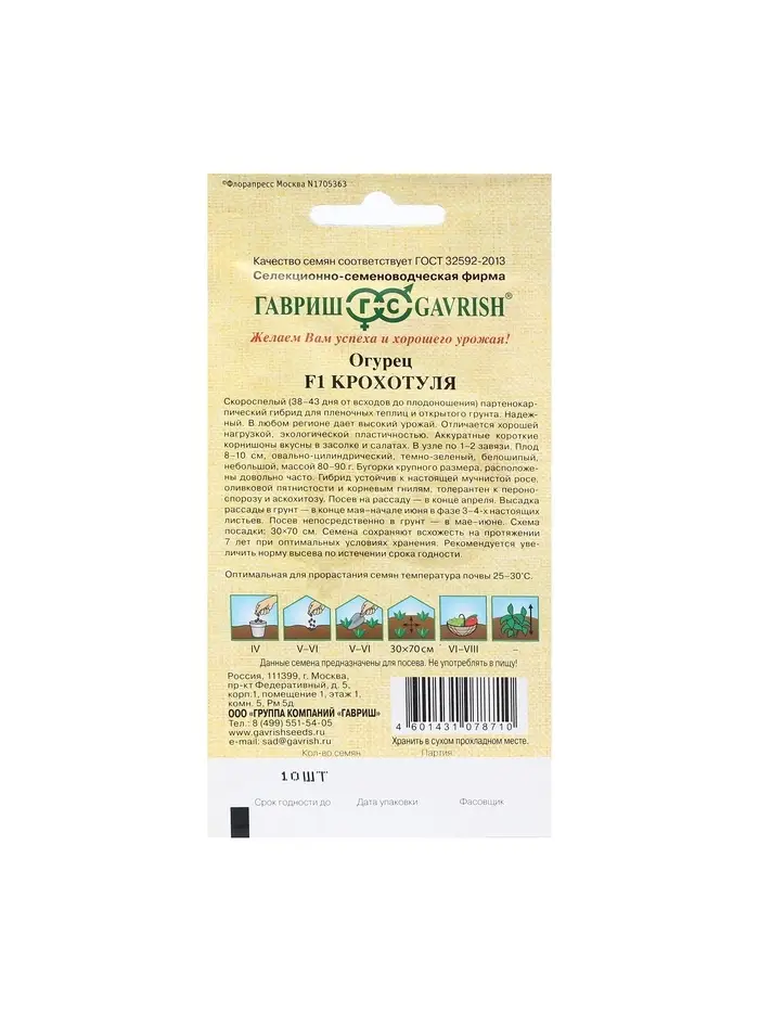 Семена Огурец "Крохотуля", F1, 10 шт