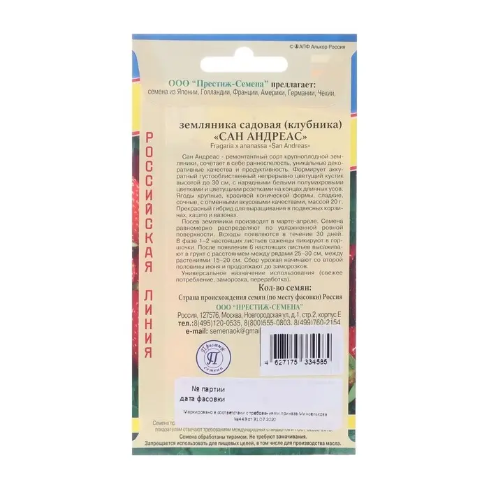 Семена Земляника рем крупн "Сан Андреасс", 0,01 гр