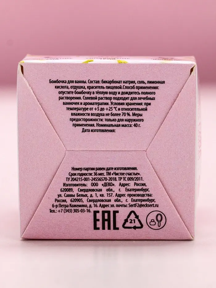 Бомбочка для ванны «Самой прекрасной», 40 г, аромат сладкой ванили, Чистое счастье