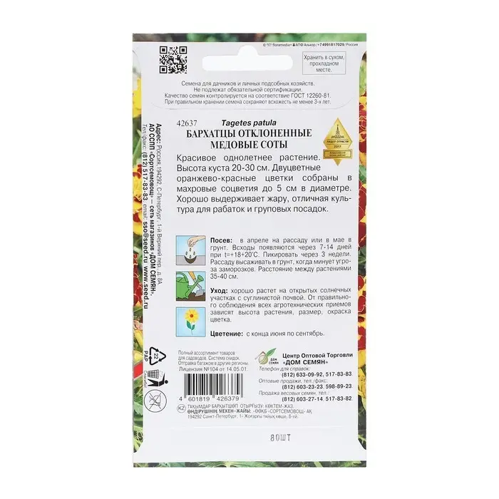 Семена цветов Бархатцы отклоненные "Медовые соты", 80 шт