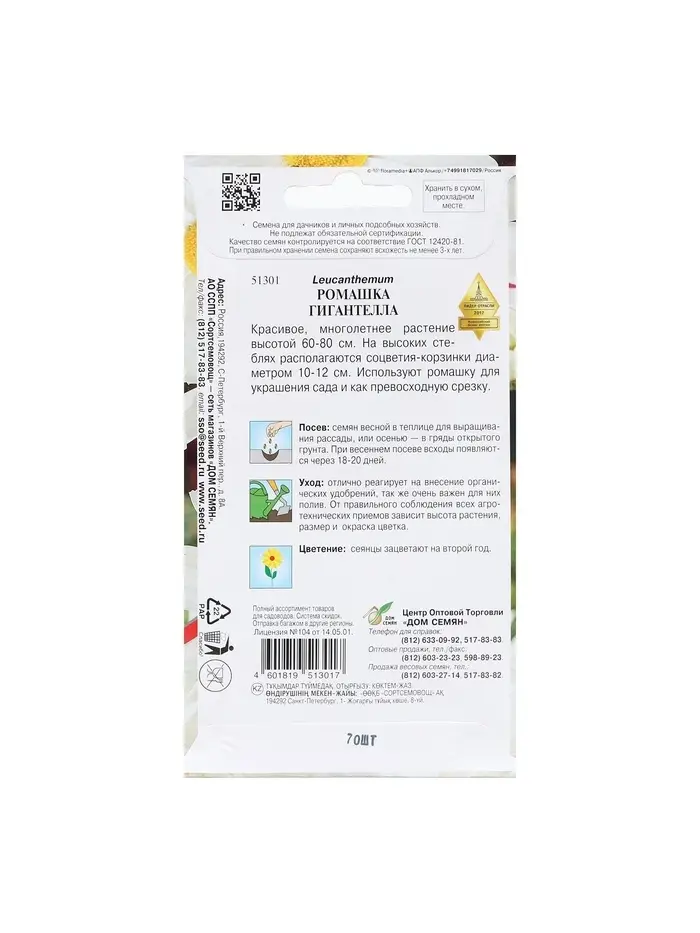 Семена цветов Ромашка "Стефания", ц/п, 0,2 г