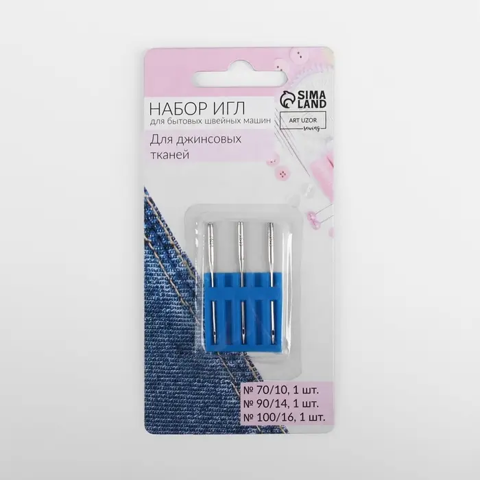 Иглы для бытовых швейных машин, для джинсовых тканей, №70-100, 3 шт.