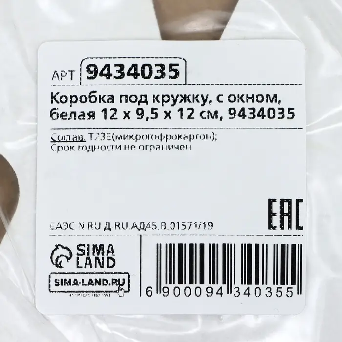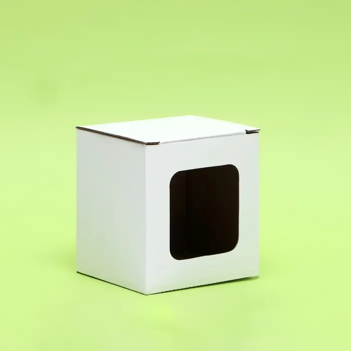 Коробка под кружку, с окном, белая 12×9.5×12 см