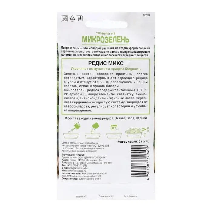 Семена на Микрозелень "Редис Микс" 5г