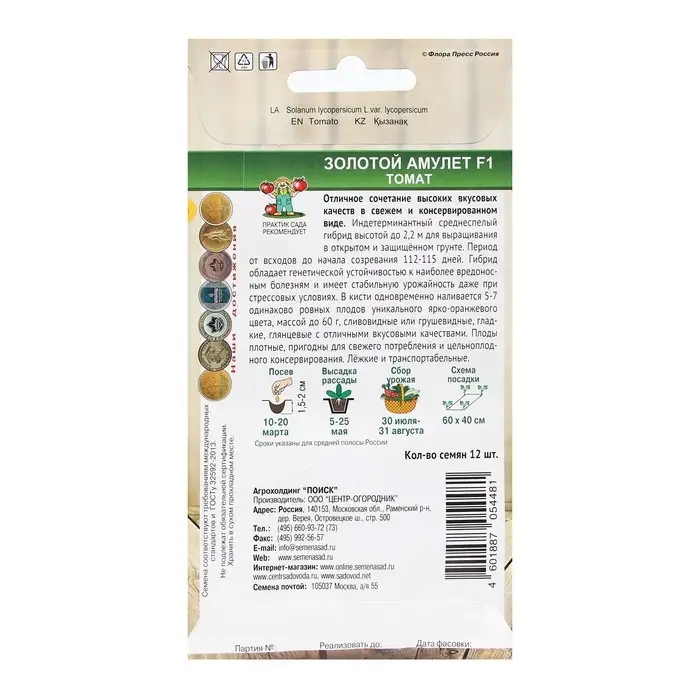Семена Томат "Золотой амулет F1" 12 шт