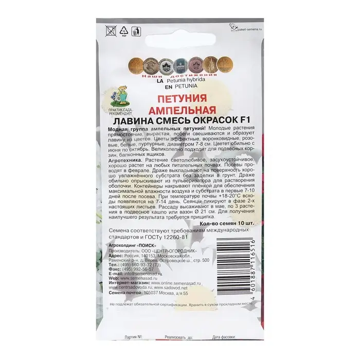 Семена цветов Петуния ампельная "Лавина смесь окрасок" F1 10 шт