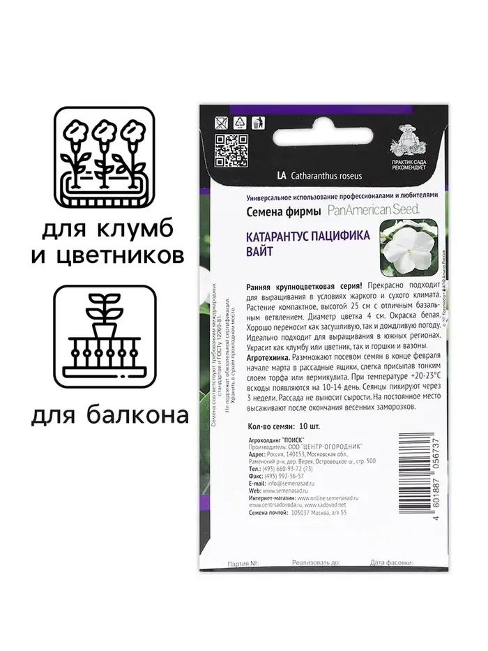 Семена цветов Катарантус Пацифика "Вайт" 10 шт
