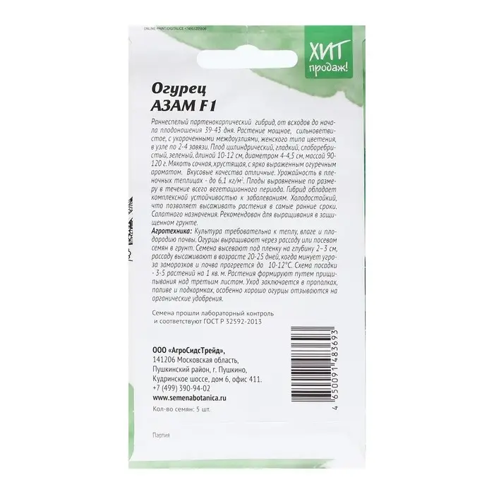 Семена Огурец "Азам", 5 шт