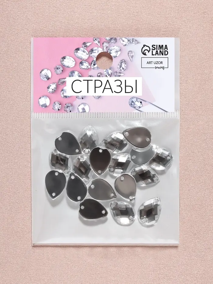 Стразы пришивные «Капля», из органического стекла, 10×14 мм, 20 шт., белые