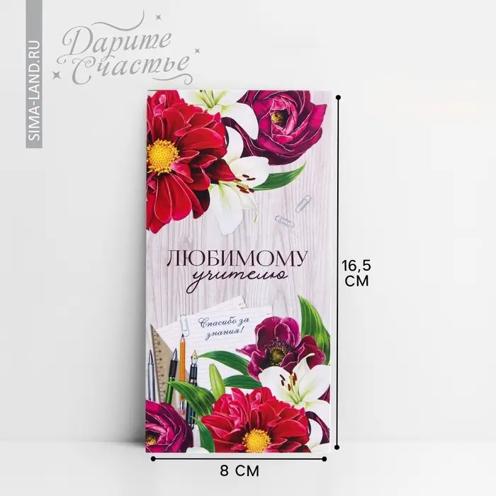 Конверт для денег «Любимому учителю», 16.5×8 см