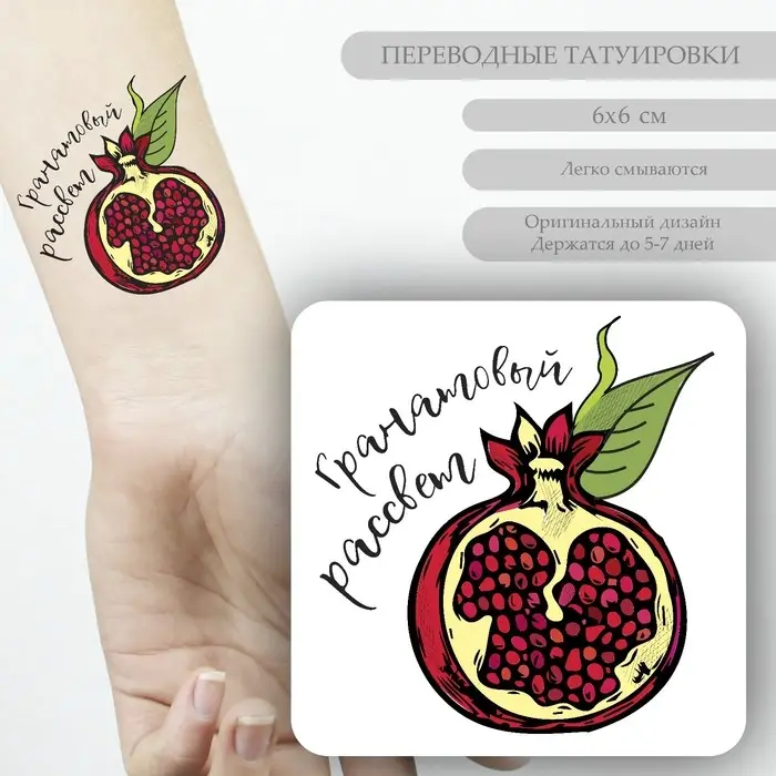 Переводная тату на тело цветная «Гранатовый рассвет», 6×6 см